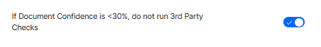 If Document Confidence is <30%, do not run 3rd Party Checks: If the document scored by the DIVE system scores less than 30%, the user can optionally bypass going to any third party checks to avoid an extra charge.