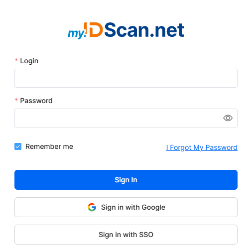 - Require SSO to sign in - Enabling this option will restrict users from using their my.IDScan.net email and password to sign in (if they previously had one) and will be able to use their single sign-on credentials.