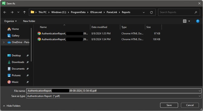 You can select any location and rename the report as needed for each ID, or leave the name and directory at the defaults for even quicker saving.