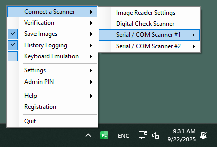 If this happens, we recommend going into the ParseLink right-click menu and checking the Reader/Scanner #1 and Reader/Scanner #2 menu items.