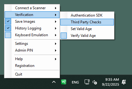 A window will appear called Third Party Checks. This is a subscription-based service requiring an access token. You can learn more by requesting a quote. |